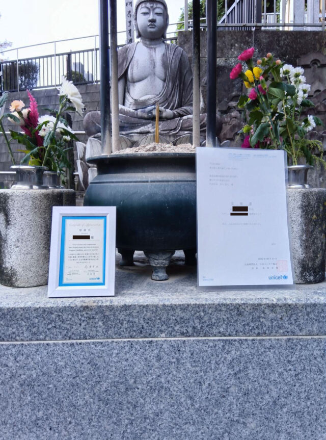 故人に遺贈手続きが完了したことを報告するために、公益財団法人日本ユニセフ協会からの故人宛の感謝状を持ってお墓参りに行ってきました。